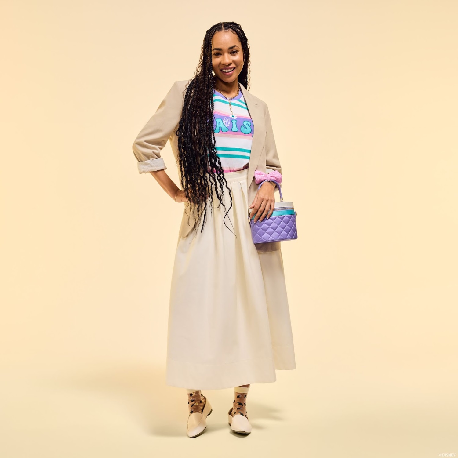 This oversized hoodie is designed with pastel and embroidered details. Look closely and you’ll find her bestie, Minnie, making a surprise appearance!
