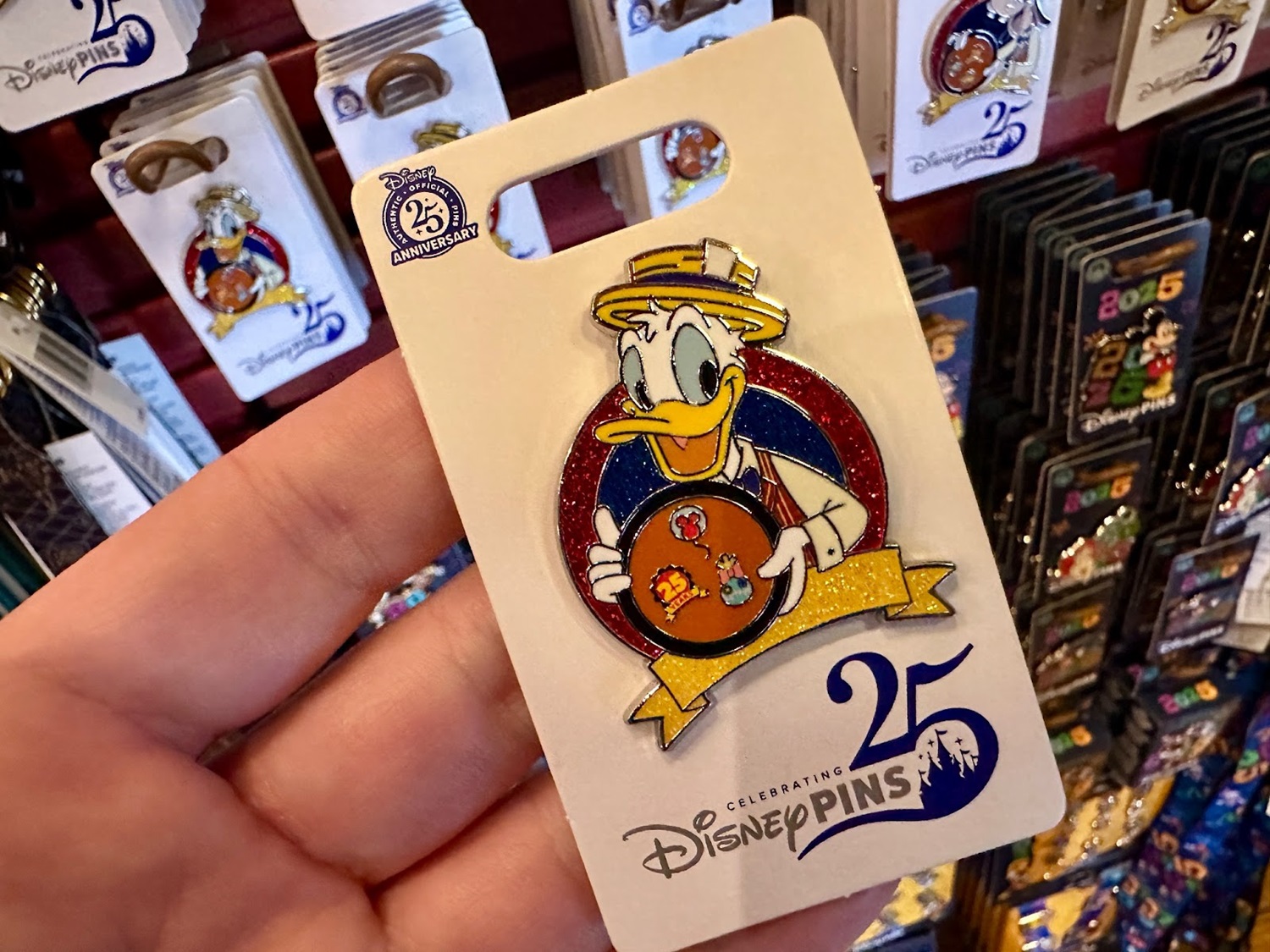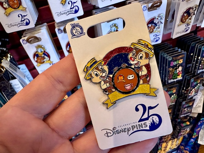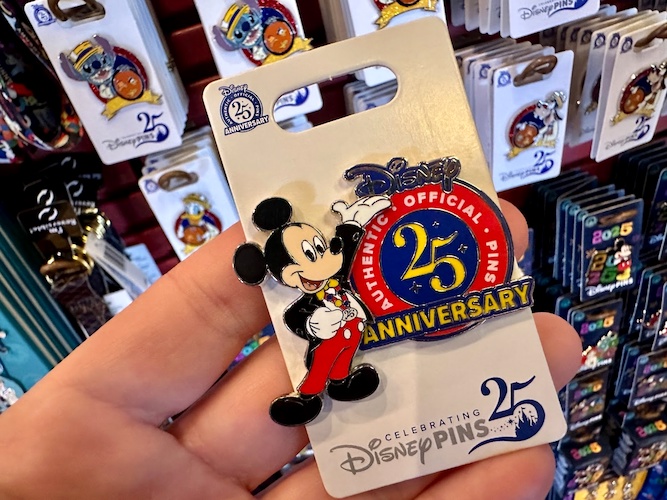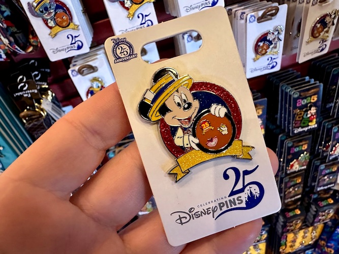 And of course, you can’t celebrate Pin Trading’s 25th without some new pins – featuring a collection of Disney characters in their dapper best, alongside a general logo pin with Mickey wearing a pin lanyard.