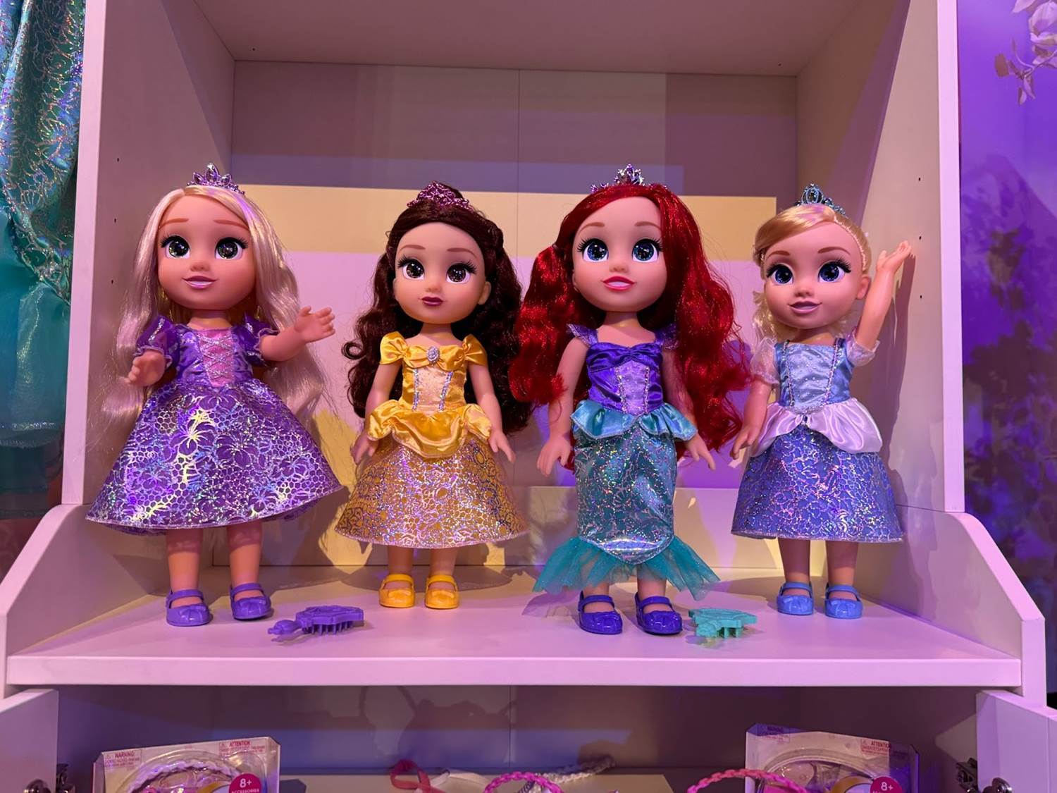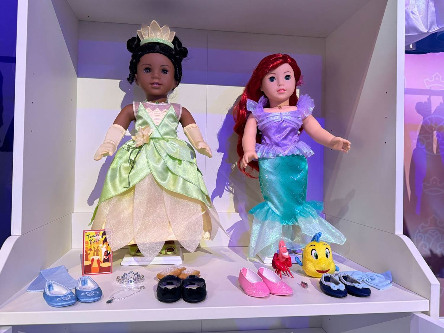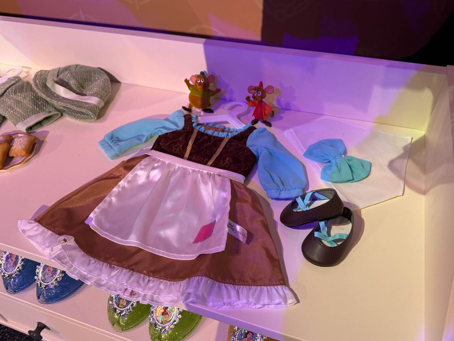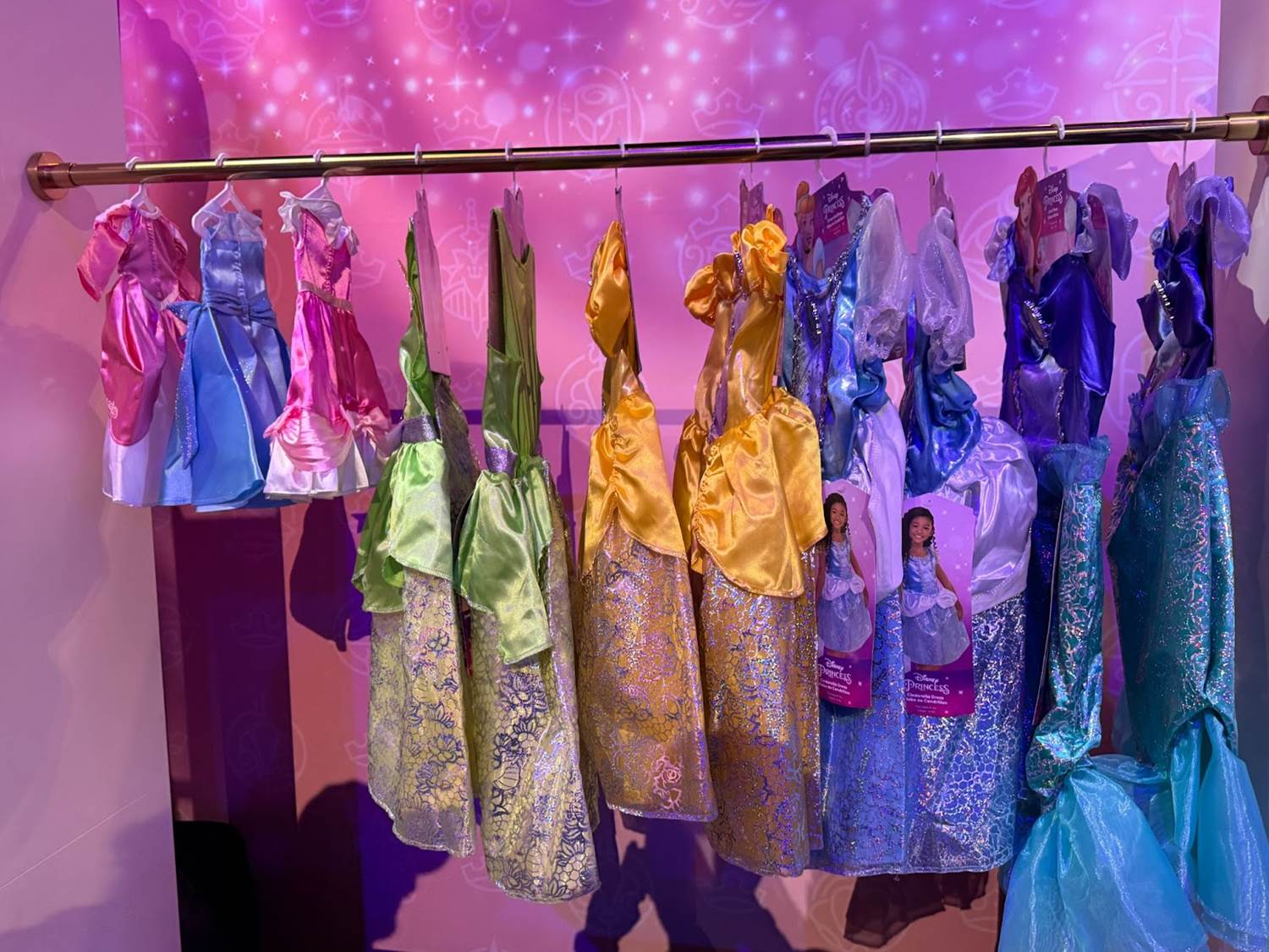 Hanging on the rack were three more American Girl Disney Princess dresses, alongside dress-up costumes for kids from Jakks Pacific. Kids can dress up as Tiana, Belle, Cinderella, Ariel, and more with these pretend-play dresses.