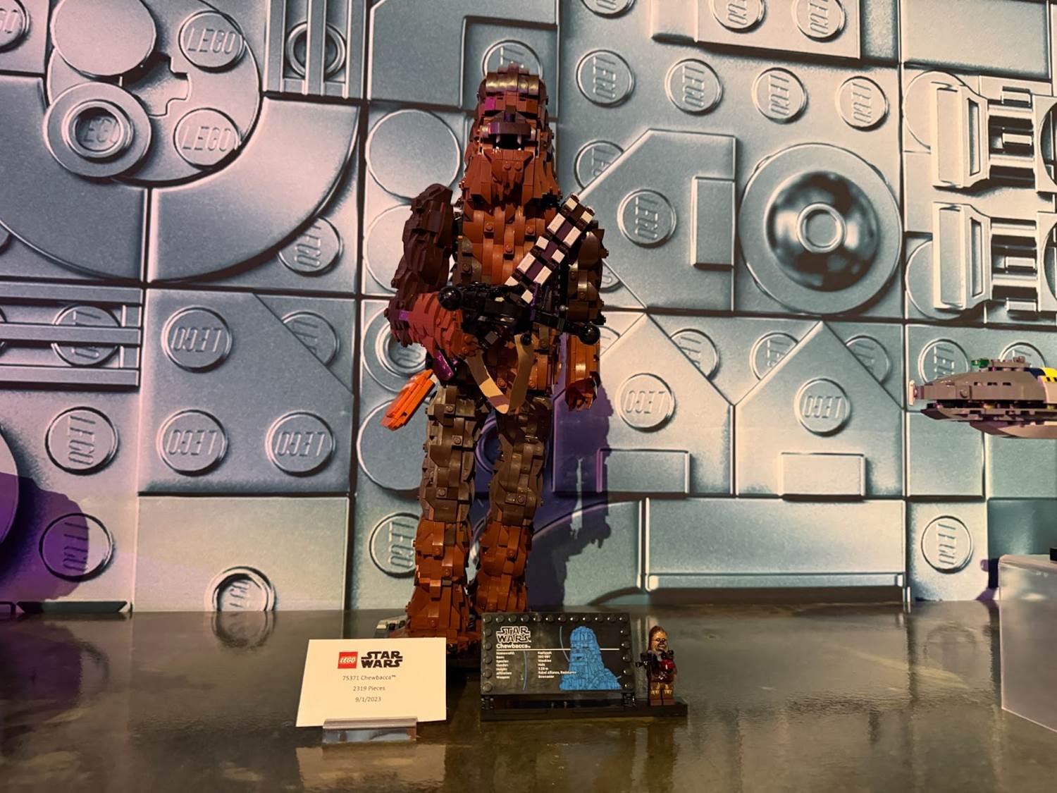 The showcase also included displays of products already available. From the world of The Mandalorian comes The Razor Crest starship, which includes minifigures of The Mandalorian, Grogu, The Mythrol, Kuiil, and a Blurrg. This build is 6,186 pieces and once completed, measures 9 inches high, 28 inches long, and 19.5 inches wide.
