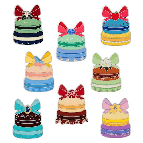 - You won't know the pins you have until you open the box, but the series includes Snow White, Cinderella, Ariel, Belle, Jasmine, Mulan, Tiana, and Rapunzel-themed macaron designs.