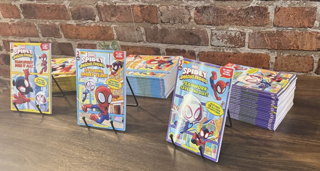 Spidey and His Amazing Friends are highlighted, with their collection of children’s books.