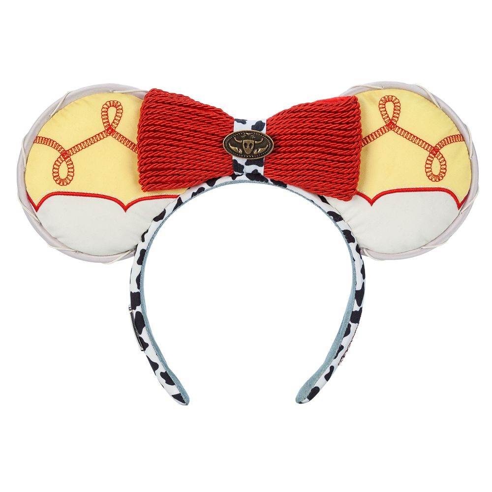 “Let your inner cowgirl roam free with this padded mouse ear headband themed to Toy Story's Jessie. Embroidered fancy filigree–plus a rope-like bow with metal ''buckle'' center and spotted ''cowhide'' print band pattern–sits you high in the saddle of style."