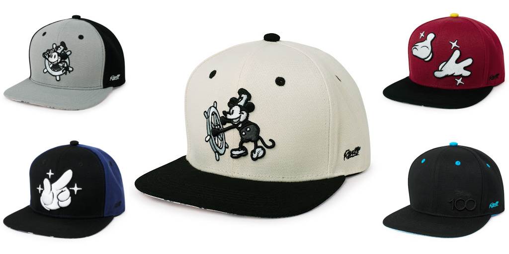 RSVLTS is also encouraging Disney lovers to get their head in the game with five Limited Edition Hats ($35). These classic baseball caps are available with Regular or Sloped Crowns and present a “Disney100" logo or Mickey Mouse icon on the front, but the real magic is happening under the brim. All five hats feature a Series 1 pattern— “Steamboat Mickey," “Hiya, Pal!," or “Sketches to Screen"— on the inside brim as a fun secret for the wearer. The back of each hat is either blank or features a “Disney100" logo.