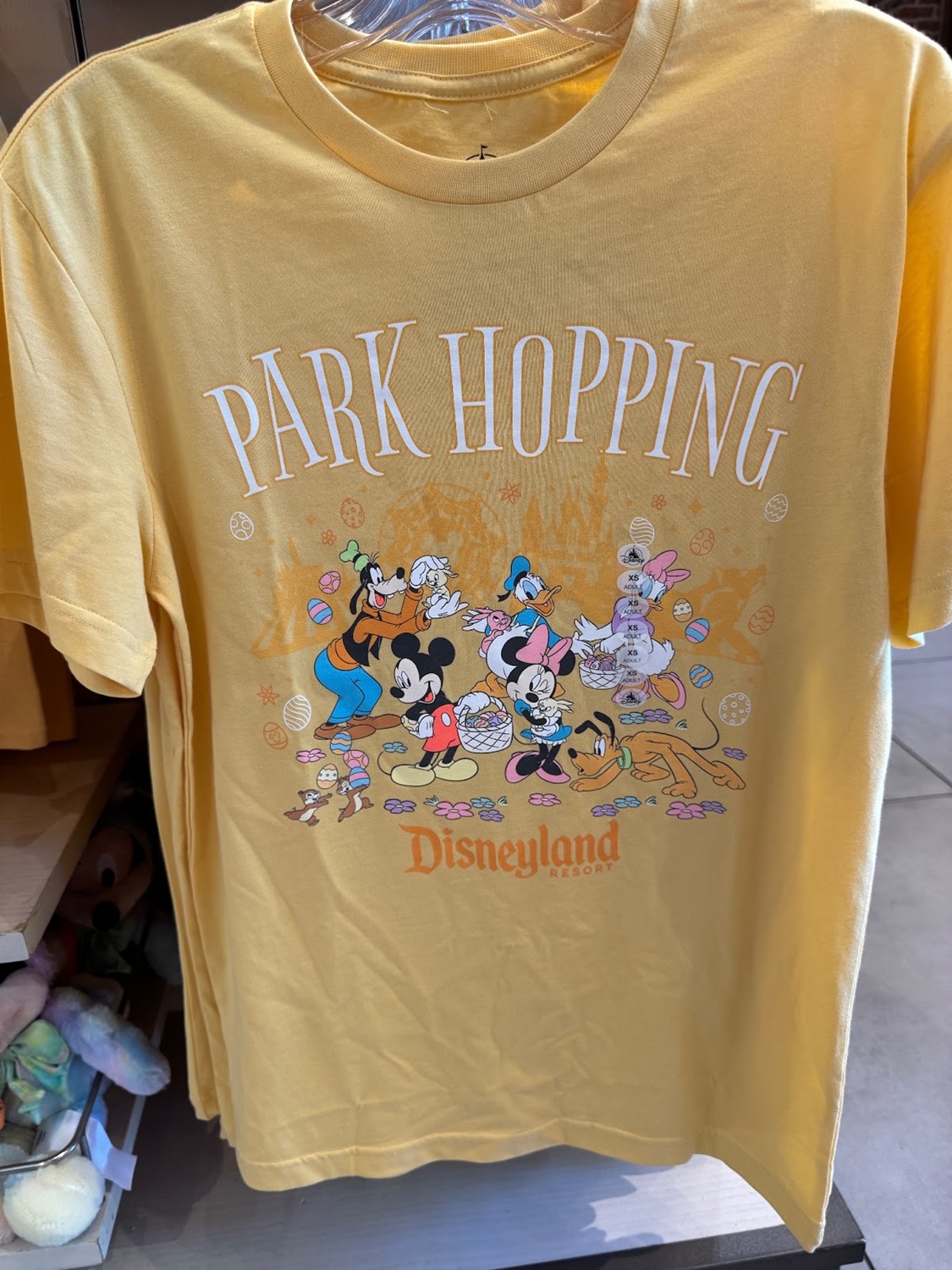 A variety of springtime T-Shirts are available, celebrating holidays occurring throughout the season. We’re particularly fans of this Easter-themed “Park Hopping" shirt.