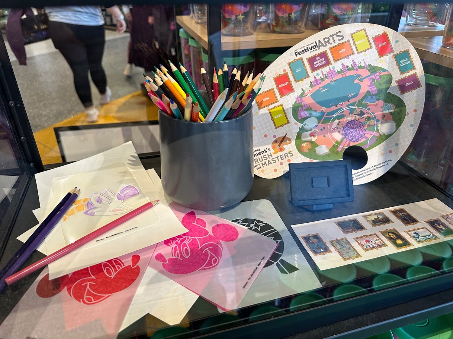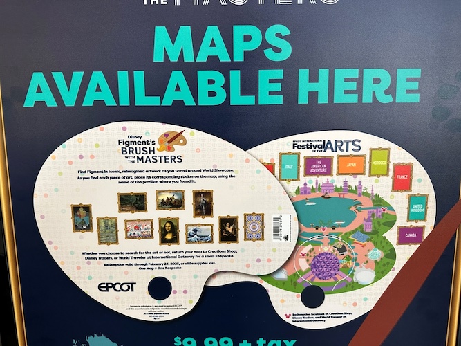 Also available to purchase at Creations Shop (and other locations throughout EPCOT) is the Figment’s Brush with the Masters scavenger hunt. The yearly activity has guests searching for Figment interpretations of famous paintings around the World Showcase. Guests can purchase a map palette and mark the paintings with a corresponding sticker.