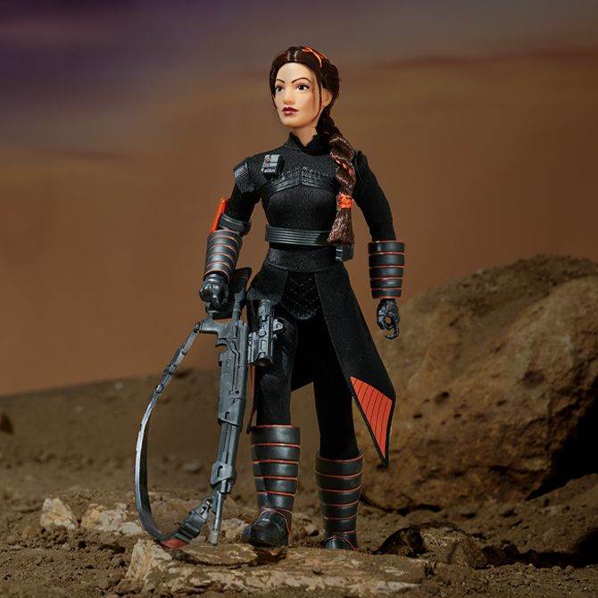 - True to her on-screen look, the doll has long braided hair with streaks of orange that also perfectly compliment her black and orange tactical gear.