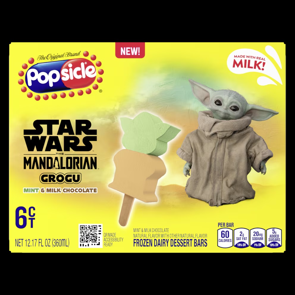 Also made with real milk, these intergalactic ice cream bars will have you asking “I would like to see the baby." Featuring both mint and chocolate flavors, celebrate you and your family's love for the iconic Star Wars character.