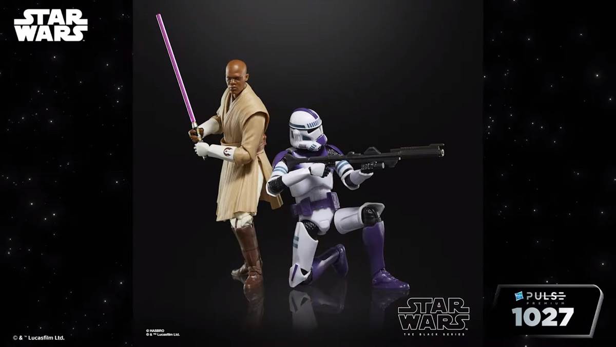 The final Star Wars reveal from this Hasbro Pulse Premium live stream was a new The Black Series two-pack of Mace Windu and a 187th Legion Clone Trooper, which is the legion of the Grand Army of the Republic that served under Windu during the Clone Wars. These new versions of these figures feature armor vambraces for Mace and purple armor highlights for the clone trooper, which matches a Vintage Collection release of the same figure.