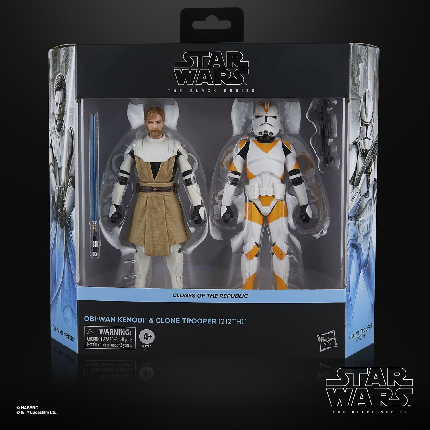 - These six-inch-scale action figures depict the characters of General Obi-Wan Kenobi and a 212th Attack Battalion clone trooper as they appeared in 2008’s Star Wars: The Clone Wars animated series, but brought into the more realistic-looking design of Hasbro’s The Black Series.