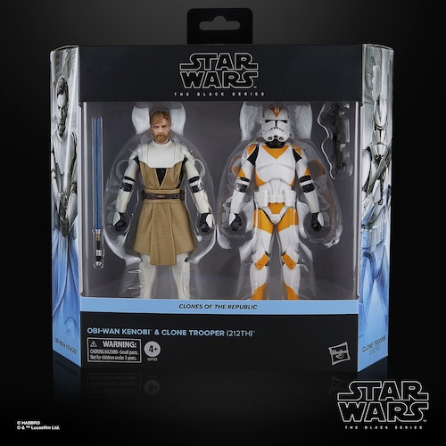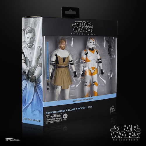 - Hasbro: “During the Clone Wars, Obi-Wan Kenobi became a general in the Army of the Republic, leading the famed 212th clone military battalion with Commander Cody. STAR WARS: THE BLACK SERIES includes 6-inch action figures, vehicles, and roleplay items from the 40-plus-year legacy of the STAR WARS galaxy, letting fans create galactic scenes with a faithfulness to STAR WARS comic books, movies, and series. This STAR WARS action figure set is detailed to look like Obi-Wan Kenobi and a 212th legion clone trooper. Comes with his signature Lightsaber and a blaster accessory. Display STAR WARS fandom and nostalgia on your shelf with packaging featuring sleek character art."