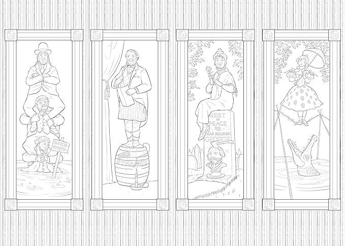 Scare up some fun coloring your way through whimsically macabre artwork of the ride’s grim grinning ghosts, scenes, and iconography, from Madame Leota, the Bride, and the Hatbox Ghost to the Stretching Room, Endless Hallway, Graveyard, and beyond—if you dare to venture inside.
