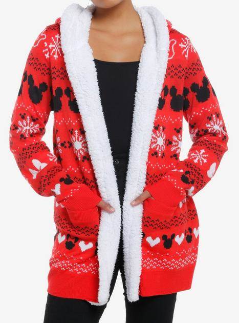 Disney Mickey Mouse & Minnie Mouse Fair Isle Sherpa Girls Open Cardigan