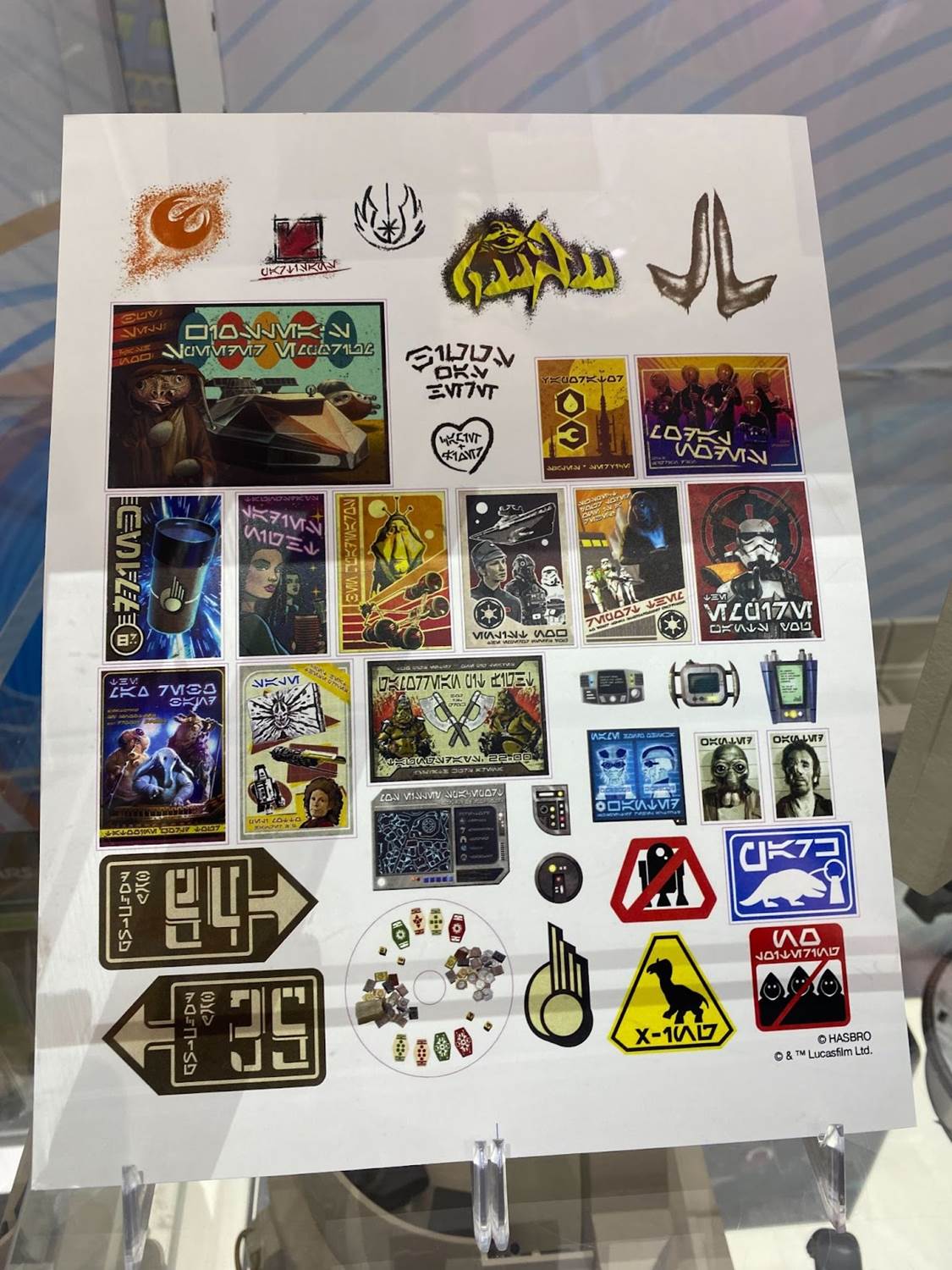 Reiff: I think the one that nobody could see from the image we released is that on one of the little tiny datapad computer screens, it says ‘May the Force be with you,’ but translated [into Aurebesh]. And it’s so small that you may or may not see it in the print resolution of the stickers, ultimately, but it’s in there in the file. And it’s one that you guys didn’t see– I don’t want to say I’m shocked, because I’m not. I was very proud how fast fans translated all of that, and even got some of the inside jokes– the number on Hondo Ohnaka’s ‘wanted’ poster being the first episode that he shows up in, cool stuff like that. Fans were all over it, and it makes me so happy.