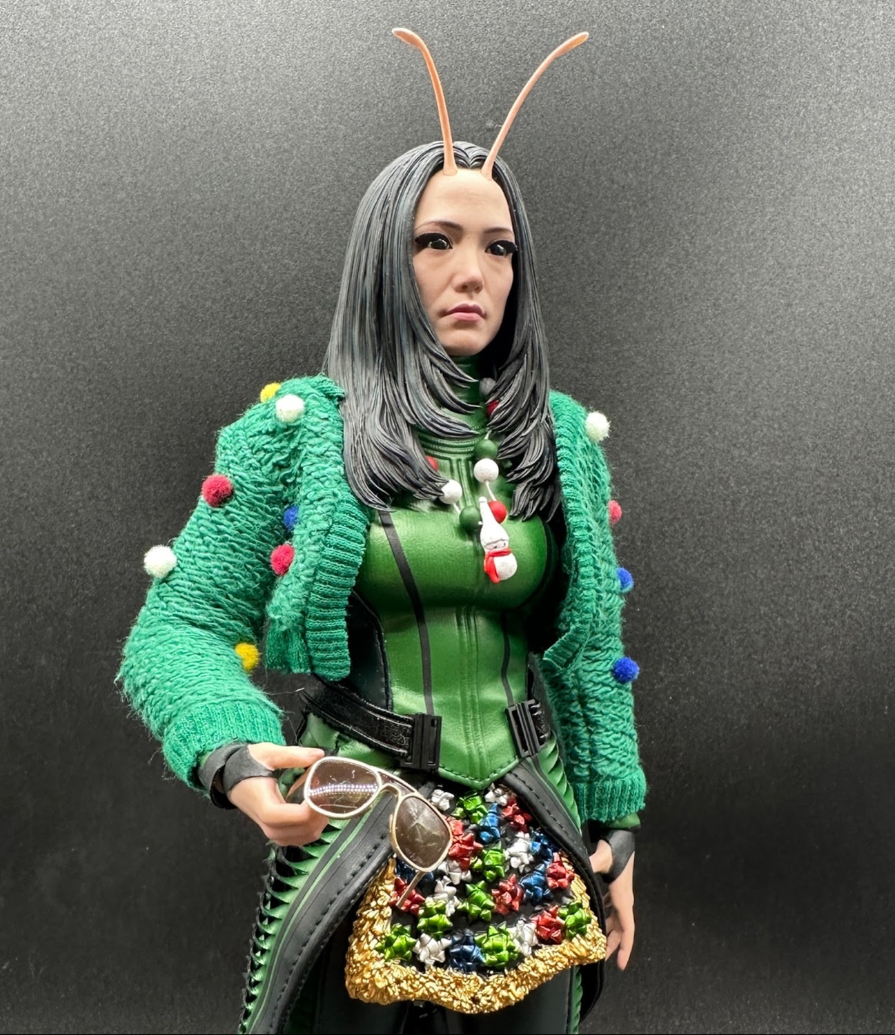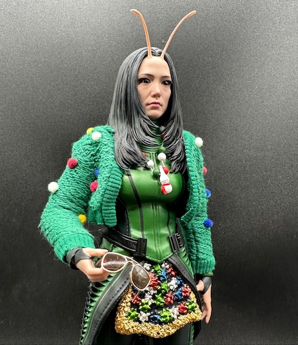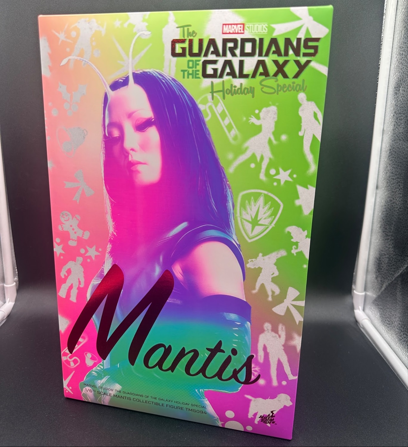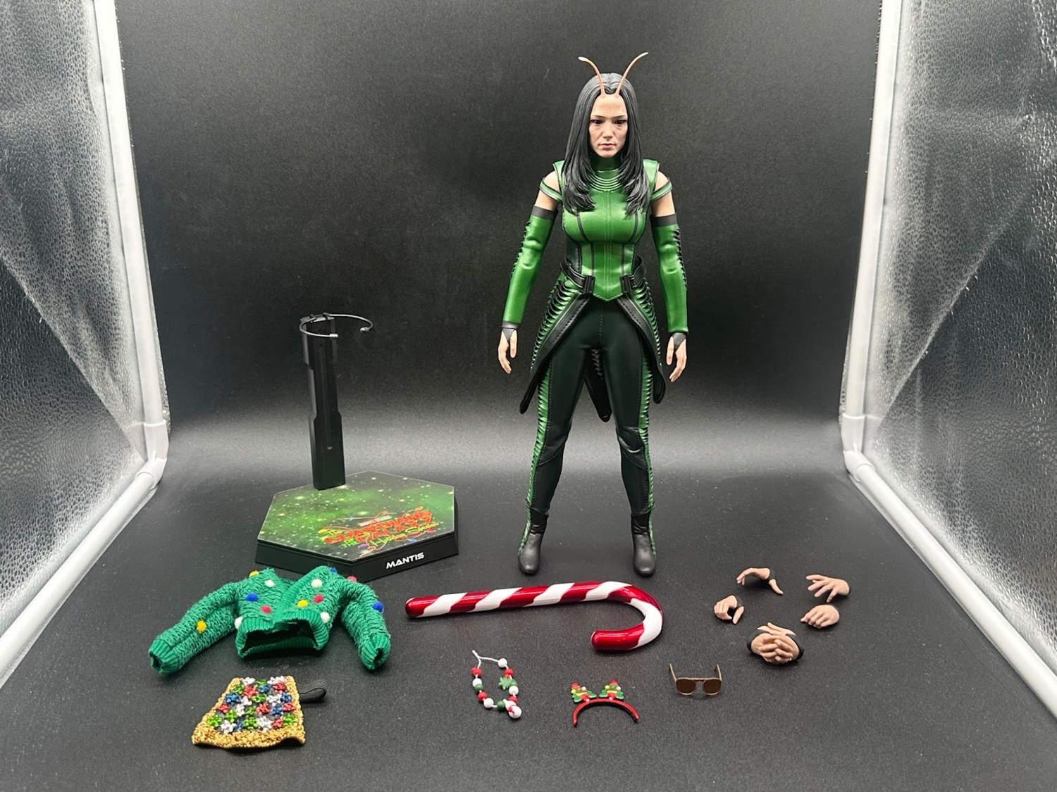 Receiving this Mantis figure in 2024 makes her feel notably special. First off is the simple fact that we at last have a Mantis Hot Toys figure at all, allowing her to finally join all of her fellow Guardians of the Galaxy on the shelf. But she’s also special because she is from the Guardians Holiday Special, and that makes her quite unique on the collectible front.