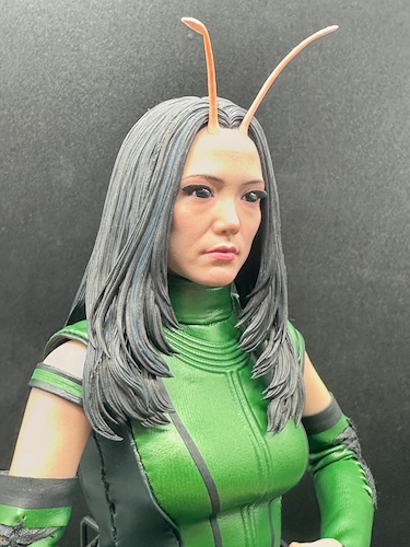 As for the actual Mantis figure, she looks great. It’s an excellent likeness of Pom Klementieff as the character, wearing that familiar alien makeup, “bug" eyes included. In a perfect world, I’d have loved a second portrait, to show Mantis in the gleeful, grinning look we’ve sometimes seen her break into, but the passive expression she has is very much one the character is known for as well.