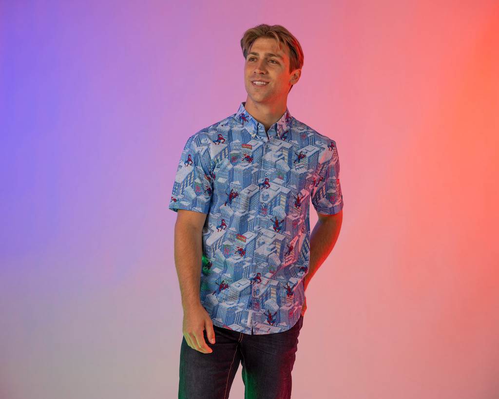 - “Spider-Man is Coming To Town" ($70) follows the fan favorite web slinger as he scales snowy buildings in New York City. The icy blue color scheme perfectly evokes the chill of winter, while the short sleeve design (sorry, no long sleeve option) will keep you cool in warm temperatures.