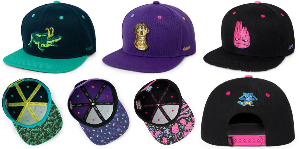 - There are a total of seven designs in this series all inspired by previous Marvel x RSVLTS collections including Guardians of the Galaxy, Infinity Stones, Spider-Man, X-Men, and Loki. These classic baseball caps are available with Regular or Sloped Crowns and present awesome embroidery on the front, but the real fun is happening under the brim.