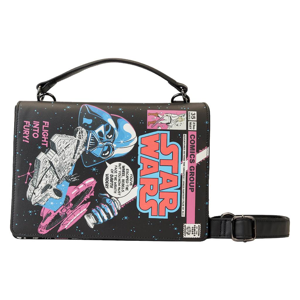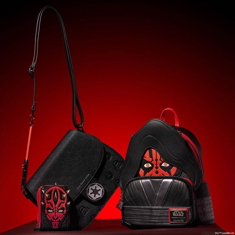 Those who are all in on the Sith will love the Darth Maul and Imperial offerings that are as stealthy as the villains they represent. The Darth Maul cosplay mini backpack comes with a detachable hood to reveal his signature horns, or for something a bit smaller, there’s a zip wallet featuring his head. An all black crossbody themed to Darth Vader is another great choice that has a lightsaber element on the strap, and Imperial insignia on the front.