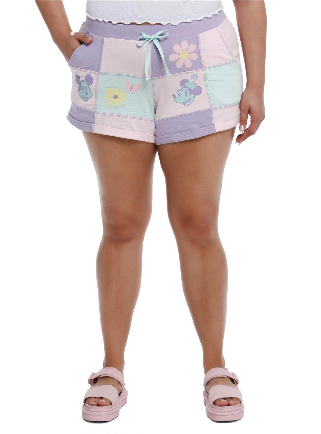 Her Universe Disney Pastel Spring Patchwork Girls Lounge Shorts Plus Size