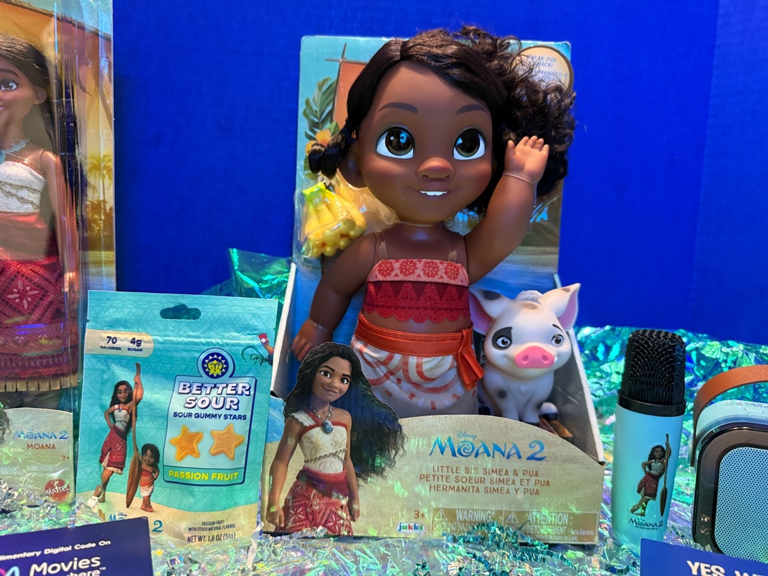From Mattel, we received a 12-inch Moana doll in the dress she wears for most of Moana 2. We also got a “boat snack" in the form of Moana-themed passionfruit gummies from Better Sour.