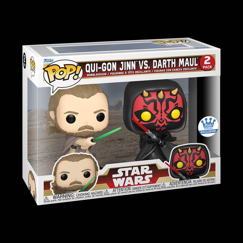 Pop! Qui-Gon Jinn Vs. Darth Maul 2-Pack from Funko ($27.00) - “The galaxy is on the brink of turmoil! Prepare for a clash between the Light and the Dark sides of the Force with Pop! Qui-Gon Jinn and Pop! Darth Maul! Celebrate the 25th Anniversary of Star Wars: The Phantom Menace by welcoming this exclusive 2-pack to your collection! Vinyl bobbleheads are approximately 3.9-inches."