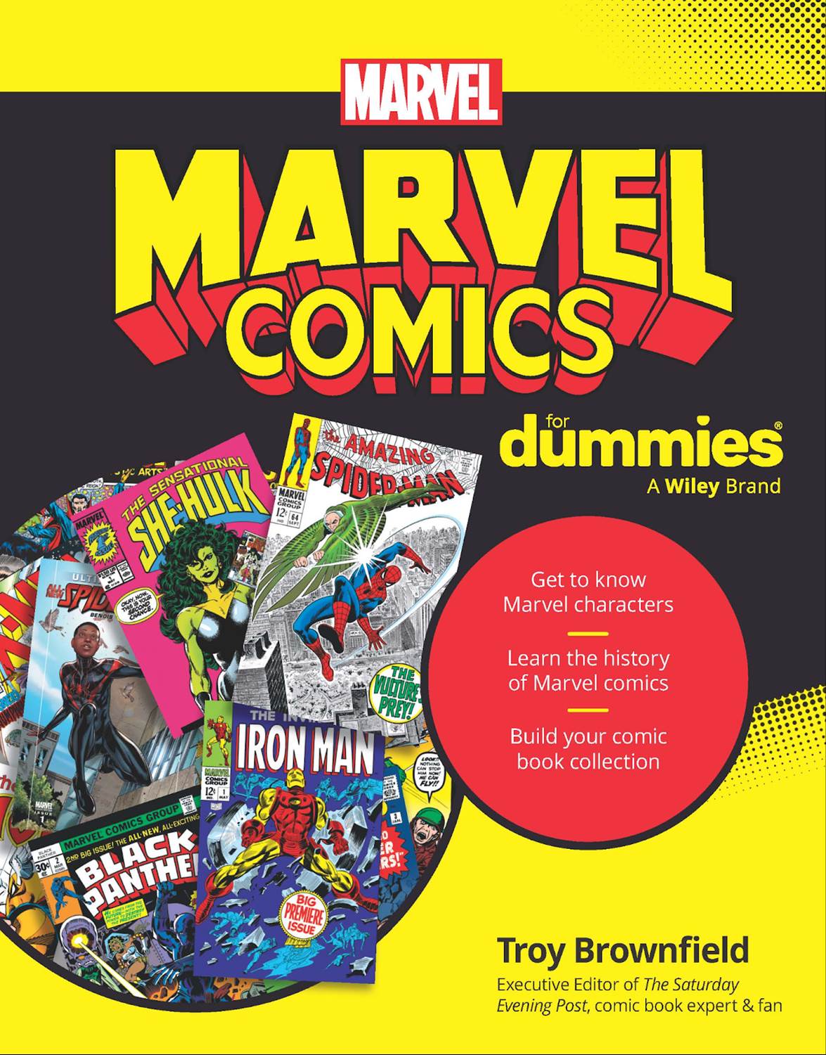 - Marvel Comics for Dummies, written by Troy Brownfield, will offer an informed encyclopedia of Marvel’s extensive catalog of comics. Readers of all ages will get an indepth look at the iconic Marvel comic book characters, including their powers, strengths, weapons, allies and enemies and more.