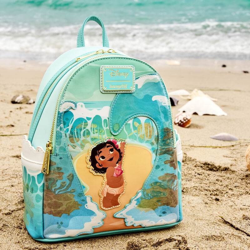- This accessory artfully recreates that moment when baby Moana discovers the waves of the sea. Beautifully rendered colors and applique details depict Moana standing on a stretch of sand as the waters part. A wave, covered in applique, printed PVC material, rises up above, and she reaches her hand out to touch the crest. Within, she finds the Heart of Te Fiti, and in the dark, this detail glows! Pack just what you need to sail through your day in style.
