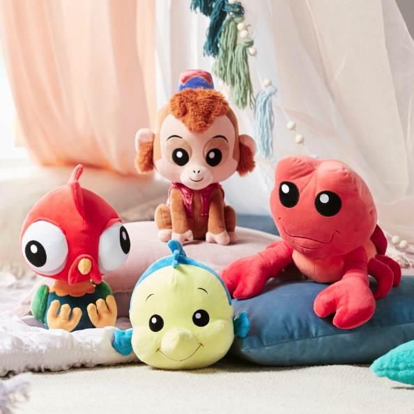 - Under the sea, he's off the hook, but in your arms he's on for a hug! The puffy Flounder plush is bubbling over with soft-stuffed charm. He'll be the best listener of all to any little mermaid's dreams and schemes. Although Ariel's fishy friend is quite small, he provides large scale cuddles. Also available: Sebastian, Heihei and Abu!