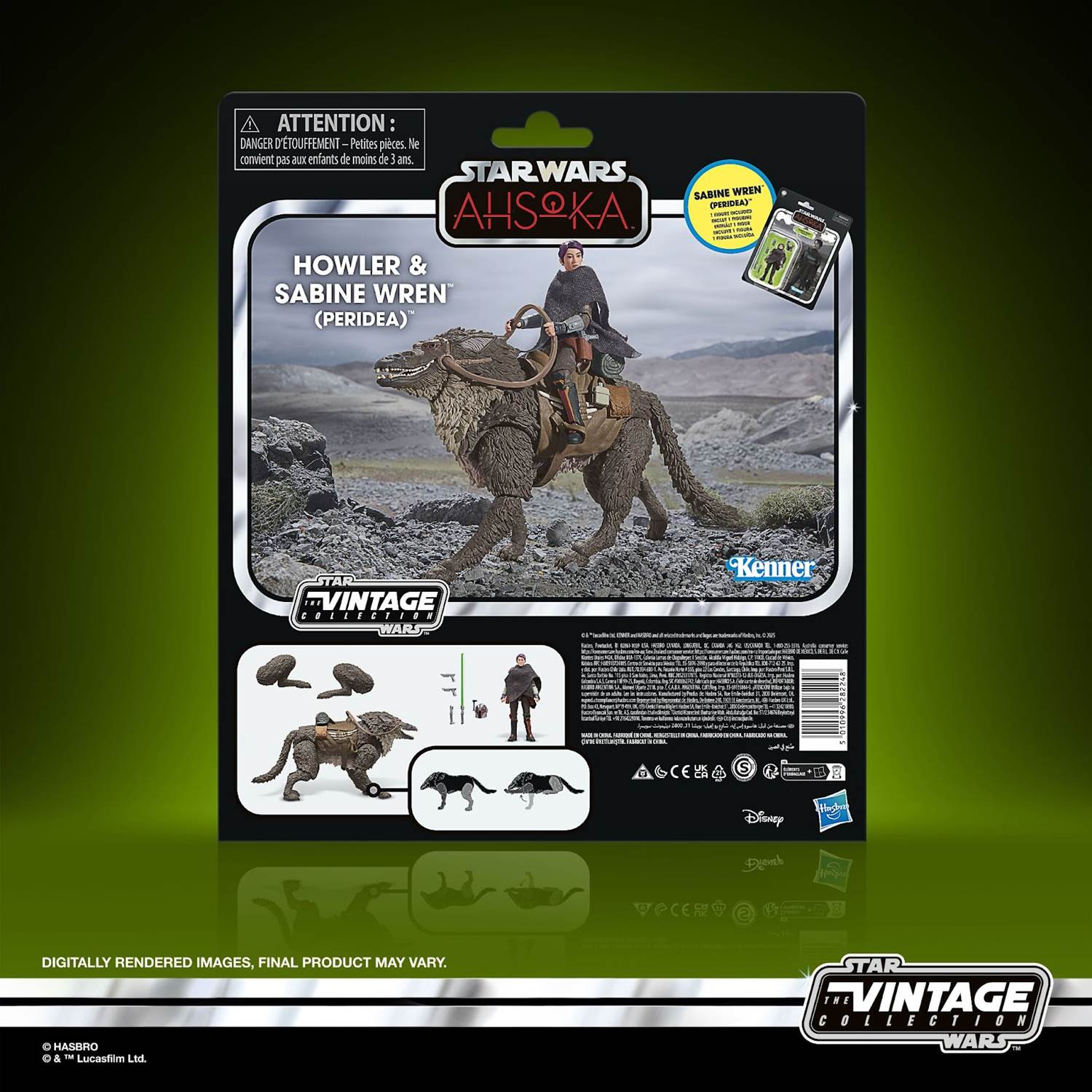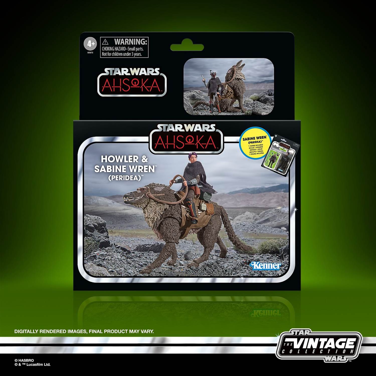 STAR WARS: THE VINTAGE COLLECTION HOWLER & SABINE WREN (PERIDEA) ($39.99) - “Sabine Wren fights off bandits with her howler mount as she searches for Ezra Bridger on the stark planet of Peridea. Based on a howler & Sabine Wren from the STAR WARS: AHSOKA live-action series on Disney+, this 3.75-inch action figure set comes with Sabine’s helmet, Lightsaber and unlit hilt, 2 blasters, and an extra set of howler legs. Inspired by the original line, these collectibles feature premium detail and design across product and packaging, as well as collector-grade deco that fans have come to know and love." Available for pre-order on October 23 at 1PM EST on HasbroPulse.com and participating retailers.