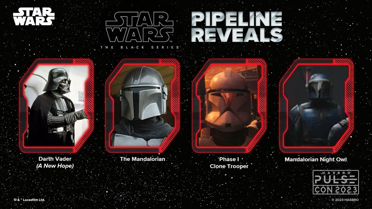 Lastly, the Hasbro Star Wars team announced some future action figures coming down the pipeline for both The Vintage Collection (Cal Kestis in his Imperial Officer disguise from Star Wars: Jedi - Survivor, the Mandalorian Judge from The Mandalorian, and a Phase II Clone Trooper 4-pack from Star Wars: The Clone Wars) and The Black Series (Darth Vader from Star Wars: Episode IV - A New Hope, the Mandalorian from season 3 of that series, a Phase I Clone Trooper from Star Wars: Episode II - Attack of the Clones, and a Mandalorian Nite Owl).