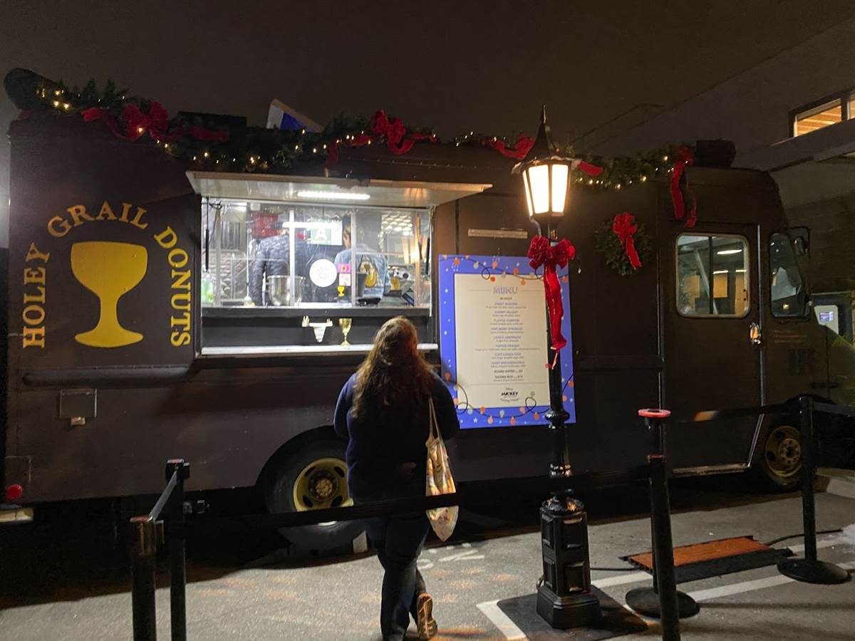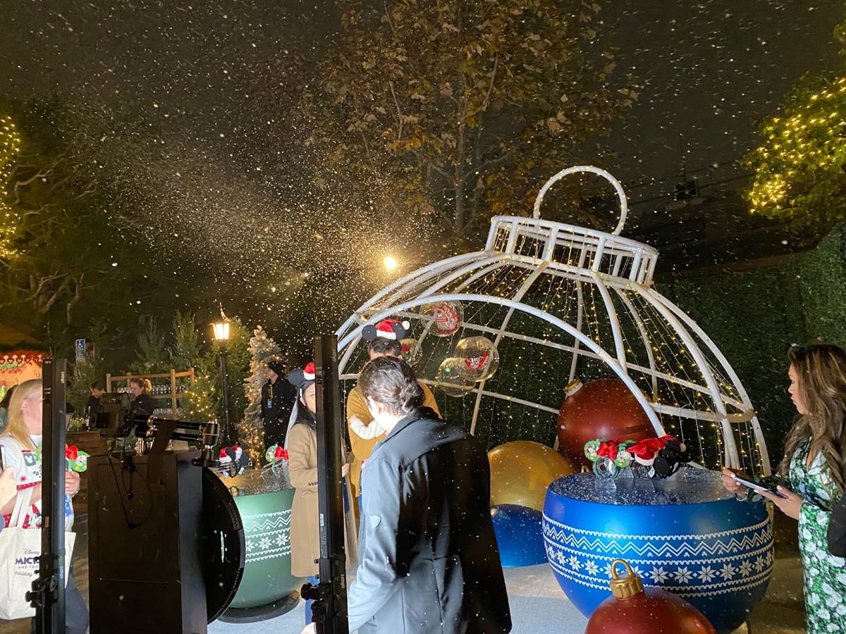 During the evening a DJ was spinning holiday and pop tunes, and every once in a while soapy snow (much like what you would see at Disney Parks) would fall on guests.