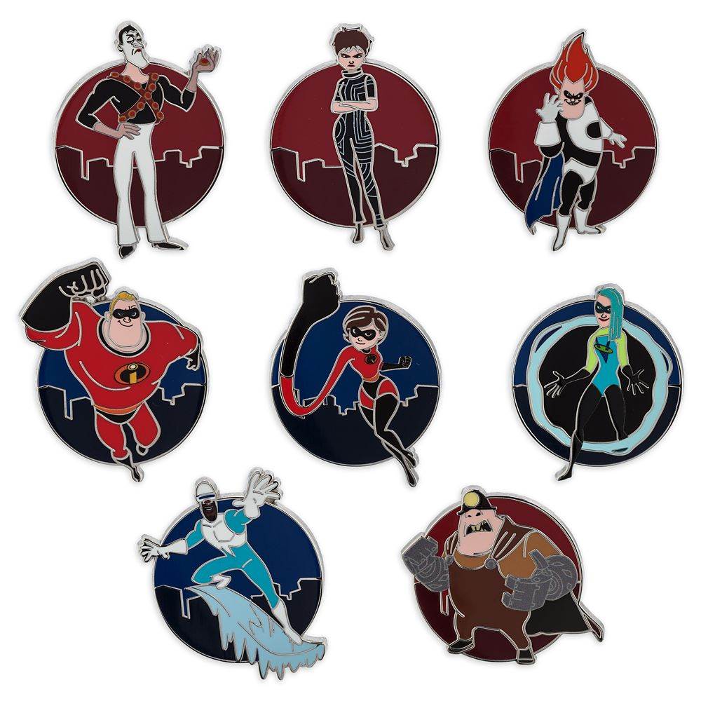 Each box contains two randomly selected pins from eight overall designs. The Incredibles series includes: