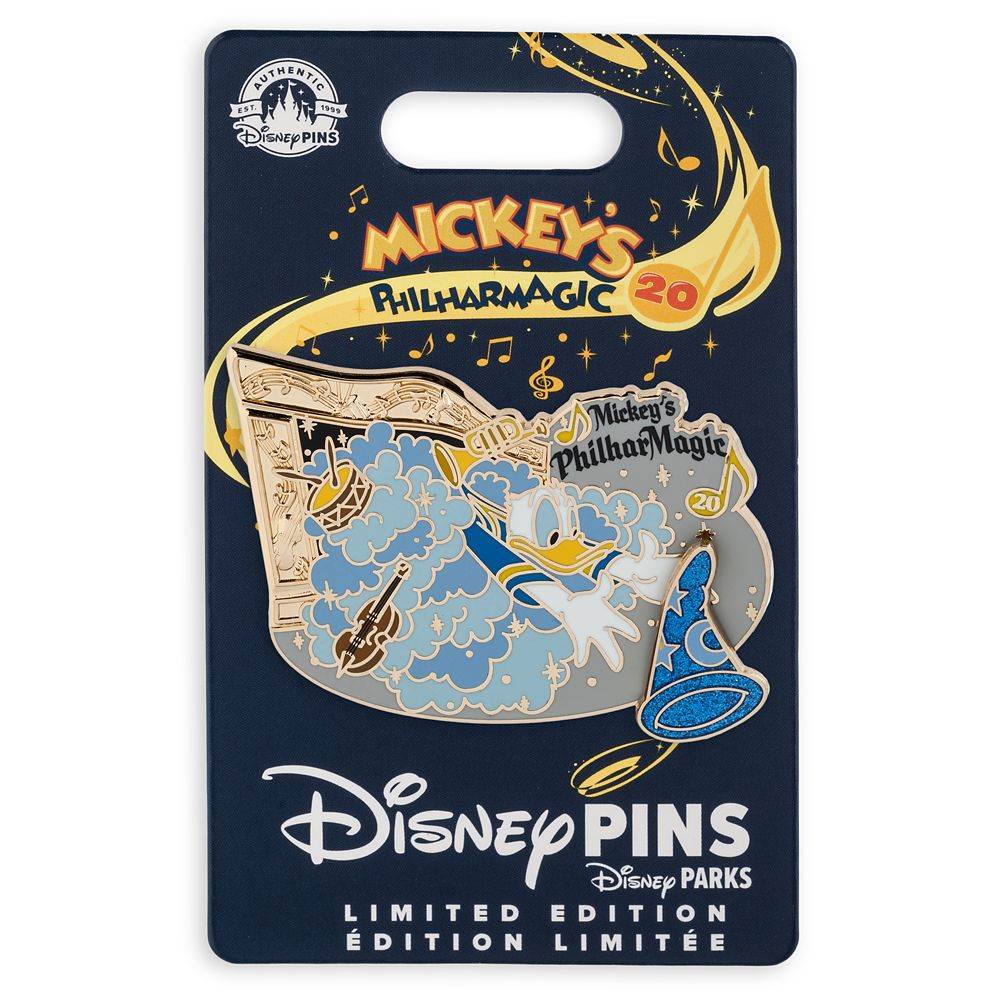 - Those fond of Mickey’s Philharmagic will love the new spinner pin that features Donald Duck flying back into the theater in a cloud of magic stardust. What’s he doing? Chasing after Mickey’s Sorcerer hat!