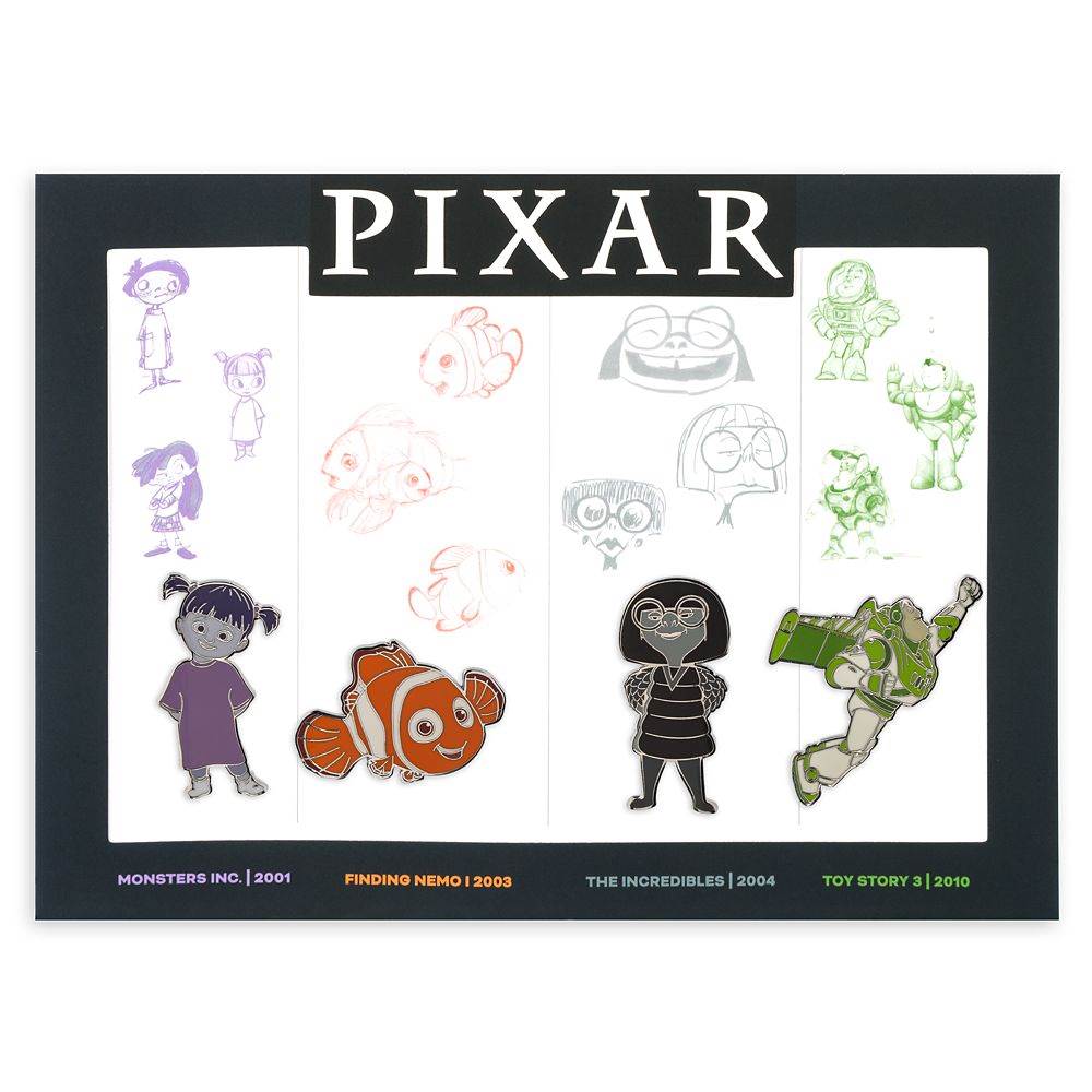 - Finally, Disney Decades 2000s collection has arrived and this month the focus is on Pixar Studios with a four pin set featuring Edna Mode (The Incredibles), Buzz Lightyear (Toy Story), Boo (Monster’s Inc.), and Nemo (Finding Nemo).