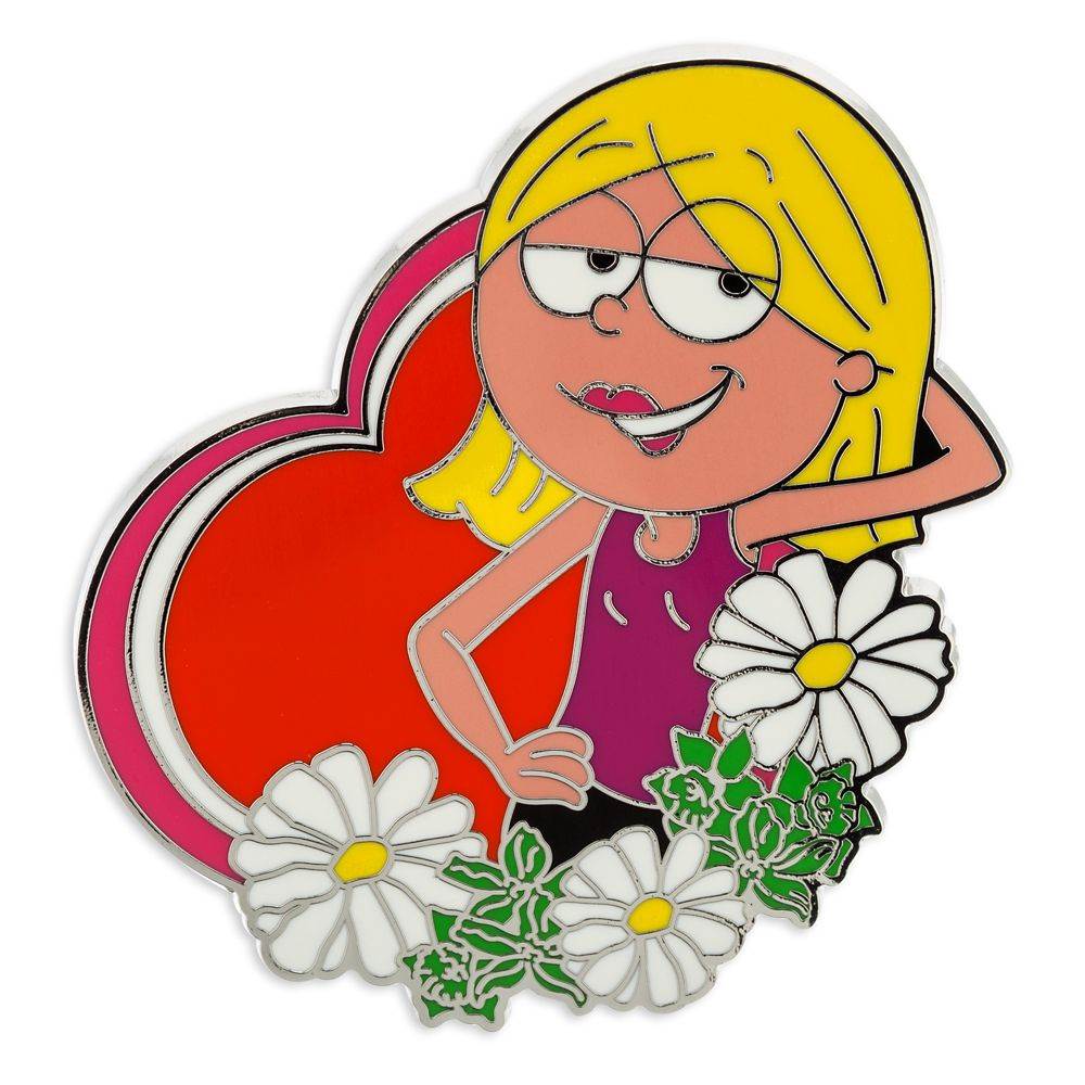 - The animated version of Lizzie McGuire takes the spotlight on her very own pin that has a heart background and trail of daisies in the front.