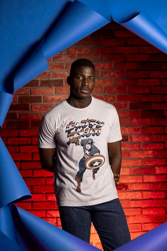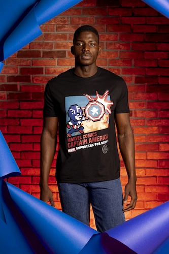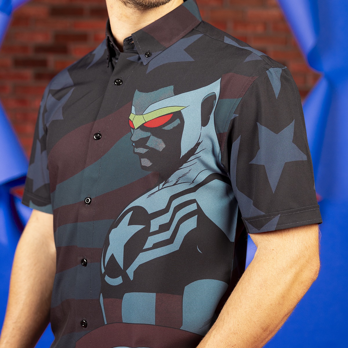 “Wield the Shield" celebrates the various looks Cap’s chosen weapon has undergone, and “No Surrender" features an epic battle scene. Finally Sam Wilson gets his very own full panel shirt titled “Symbol of Truth" that depicts the stoic hero with all the weight of his new position.