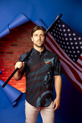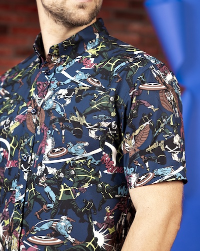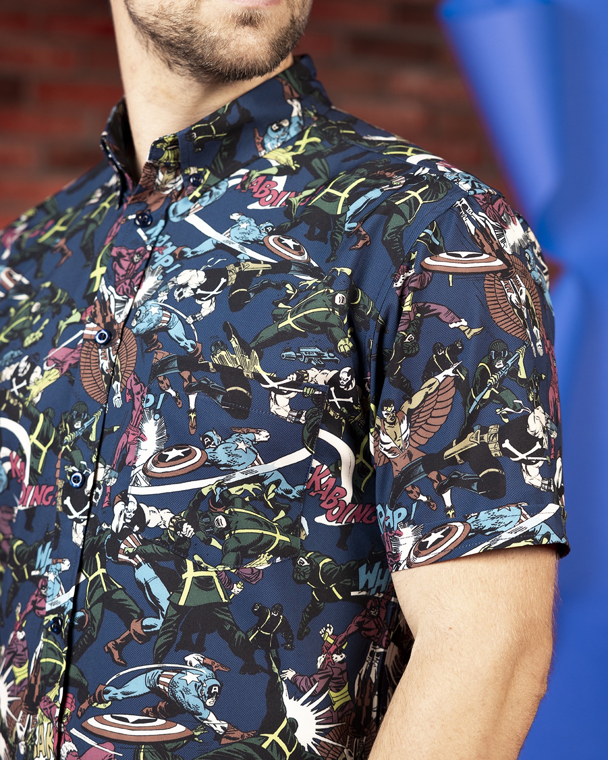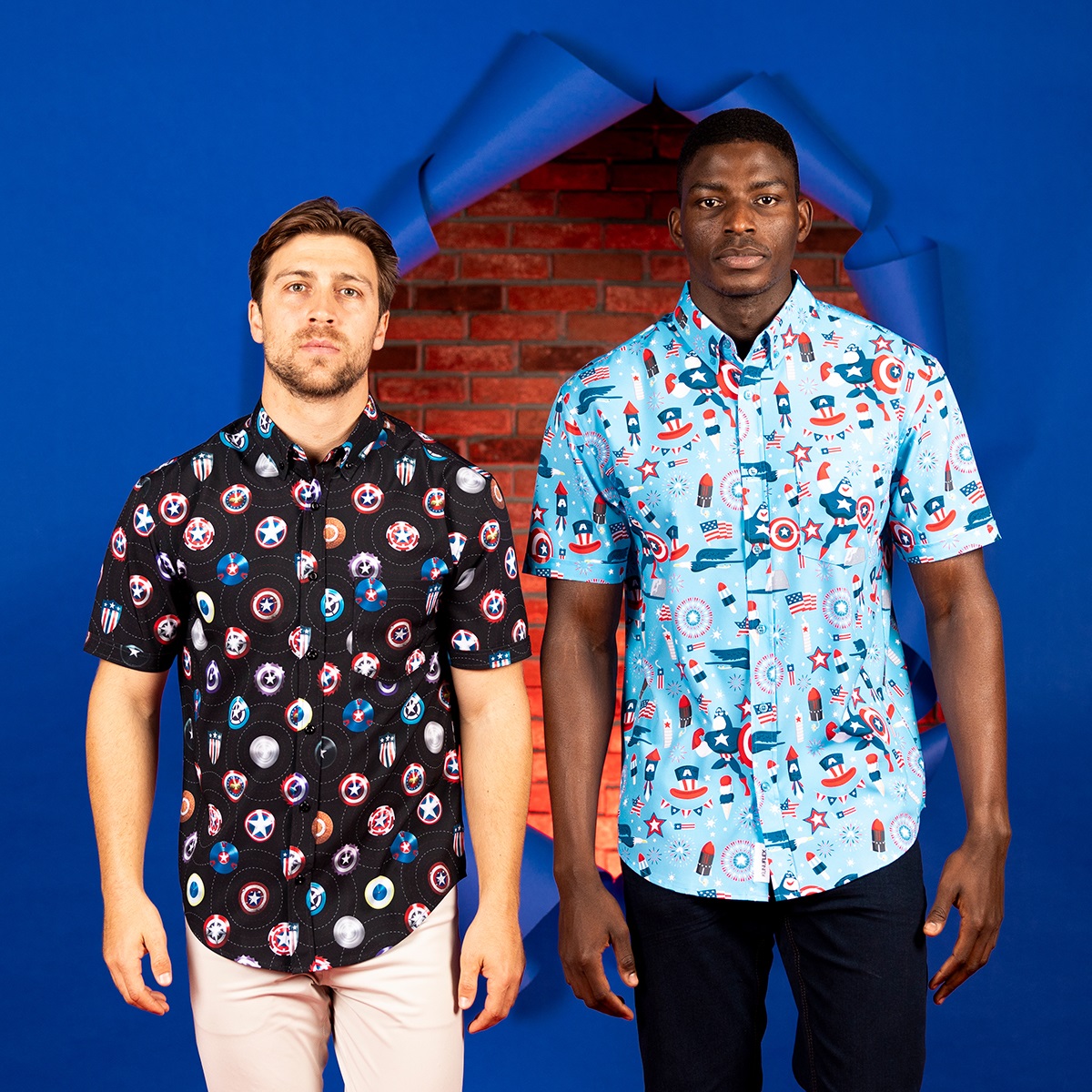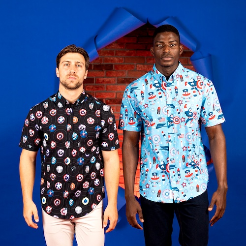 The signature Kunuflex button down shirt style is the main focus of this drop with five new designs all inspired by the legendary hero. Fans will get a kick out of "Rogers Red Glare" that is quite the star spangled wonder, while “Red Fightin’ Blue" pits a brightly hued Hulk against the iconic shield!