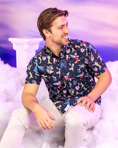 While Sorcerer Mickey is the icon of Fantasia, the towering, villainous Chernabog is a presence you won’t soon forget. Both characters star on their own Kunuflex shirts, and Mickey gets a chance to shine in several patterns including the limited edition “Sketches in the Stars." Chernabog takes the spotlight on “Fright on Bald Mountain," a delightfully dark design that’s elegant and spooky.