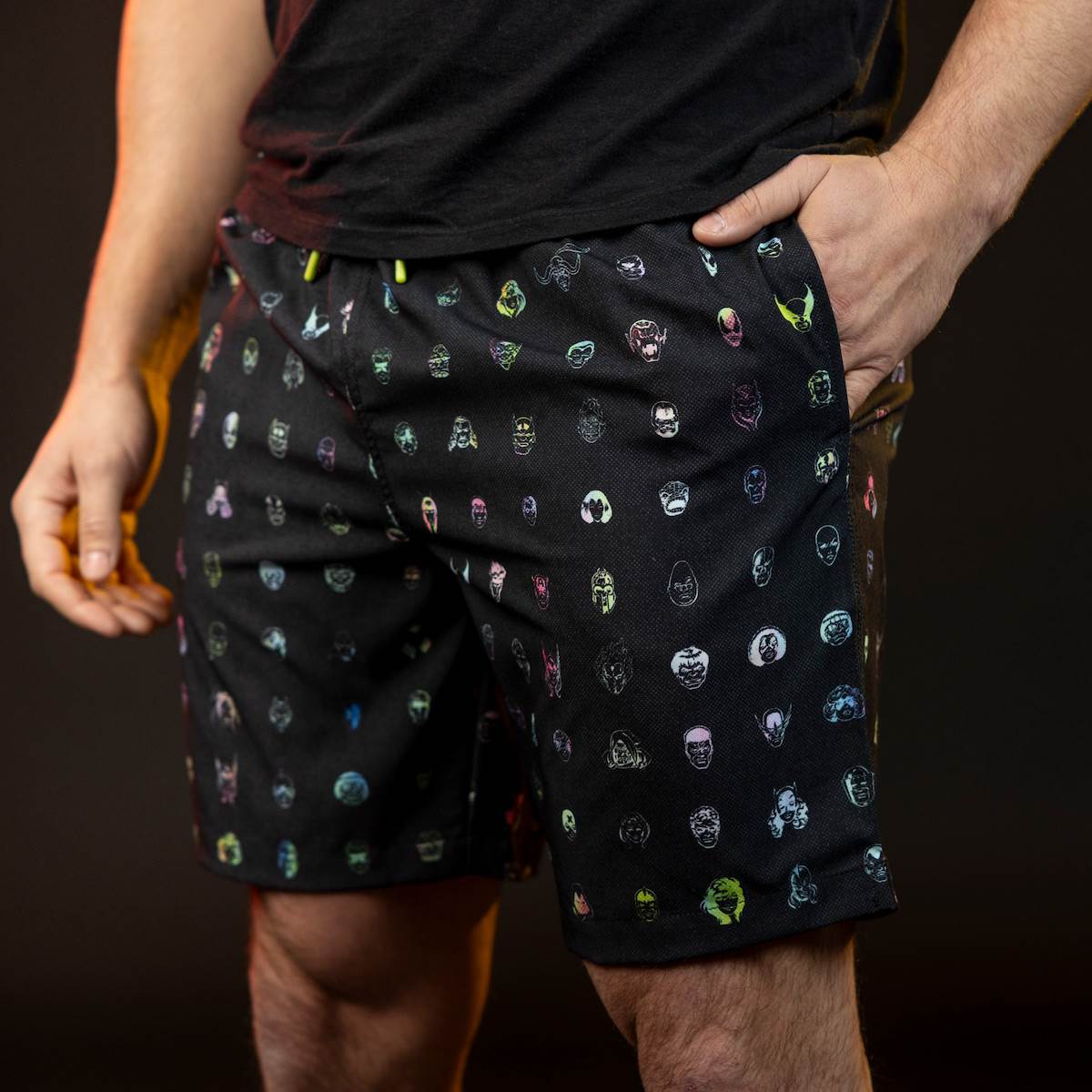 - Heroes are supposed to have a secret, alter ego, and “Faces of Marvel" (Ladies) respects that with a pattern full of miniature masked faces. This design is also available in hybrid shorts ($65).