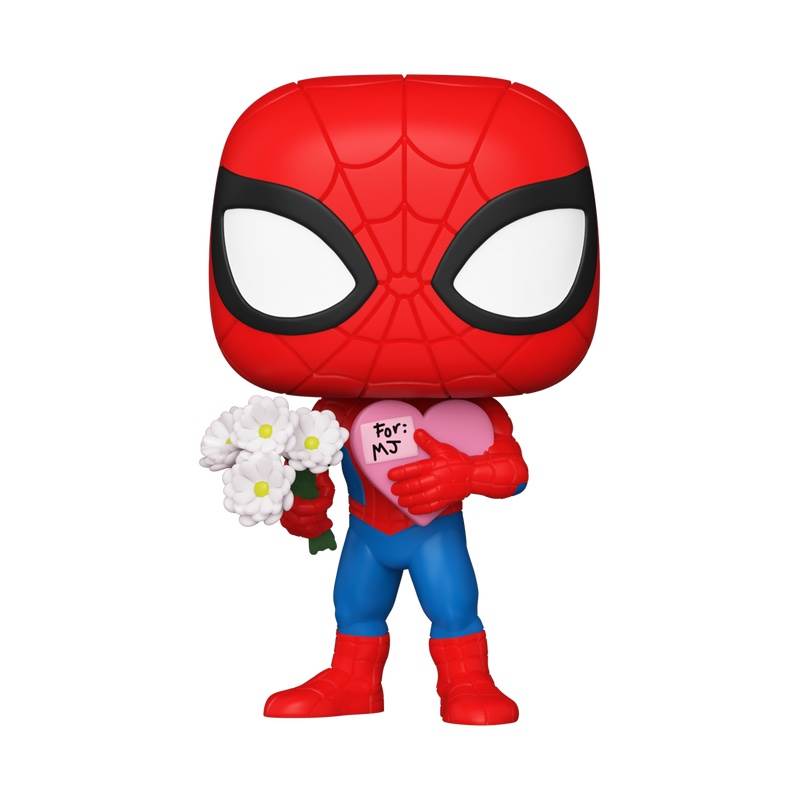 - As for Spider-Man, the friendly neighborhood hero is wearing his classic suit and he’s here to treat MJ to a special date. Spider-Man holds a heart-shaped box of chocolates for his girlfriend as well as a bouquet of white flowers she’s sure to love.