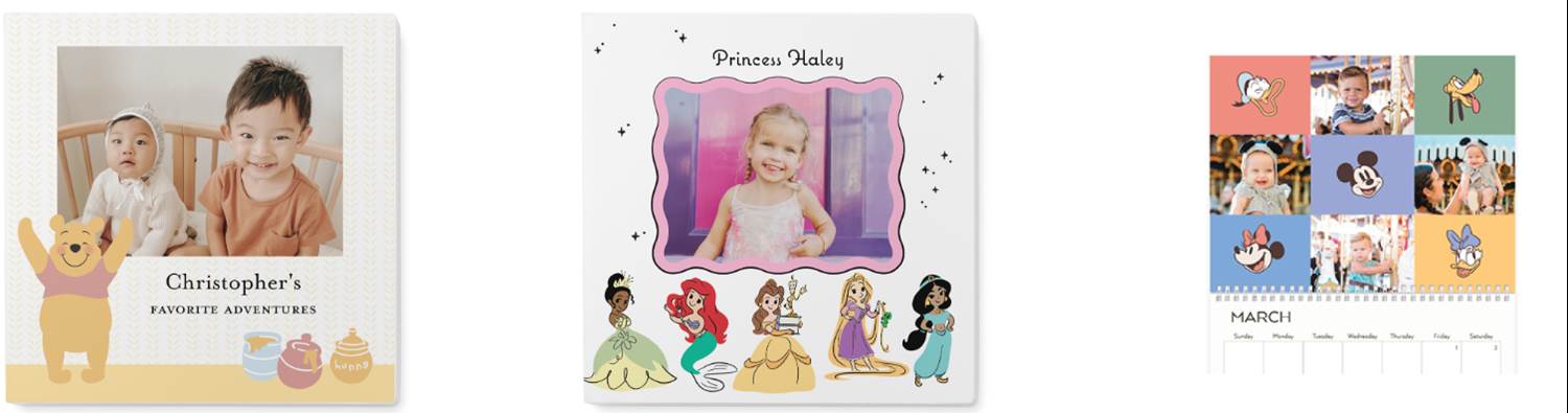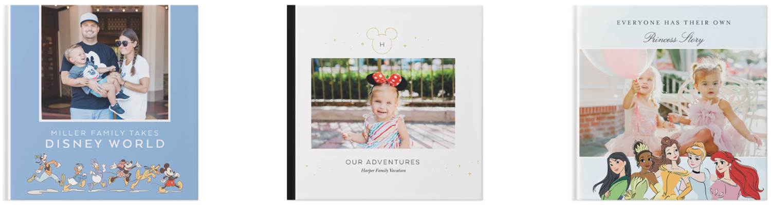 - Disney fans looking to celebrate their Disney vacations can create custom photo albums, children’s board books, and calendars with Shutterfly.