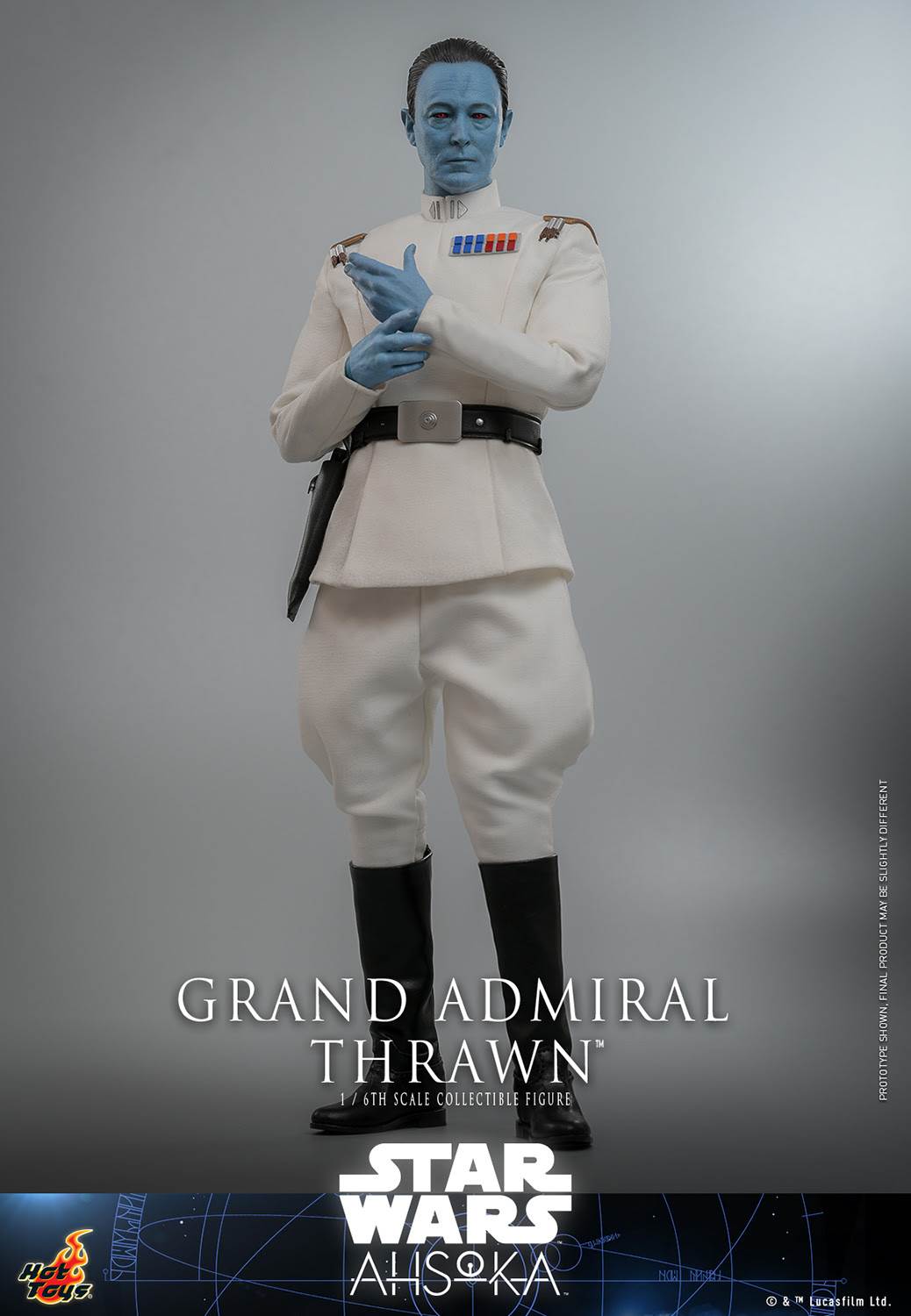 - The Grand Admiral Thrawn 1/6 Scale Collectible Figure features a striking hand-painted headsculpt, equipped with Hot Toys’ innovative rolling eyeball system which allows fans to adjust the figure's gaze, creating more nuanced and lifelike poses.