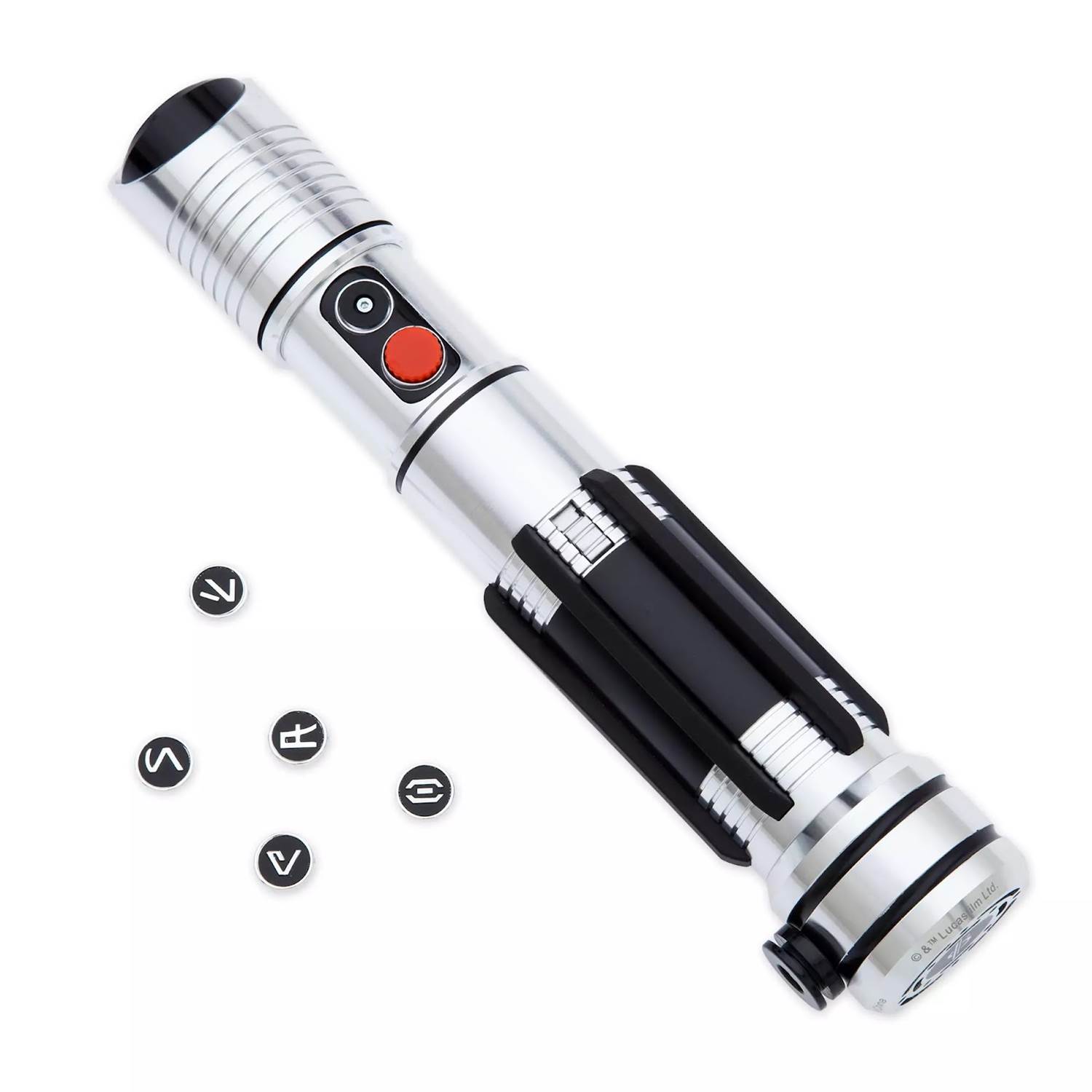 - 26 Aurebesh letter charms inside the hilt case can be used to customize Lightsaber.