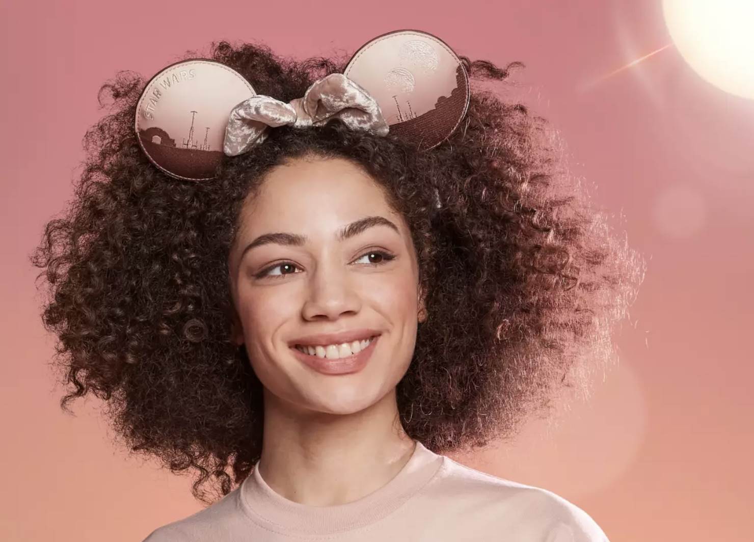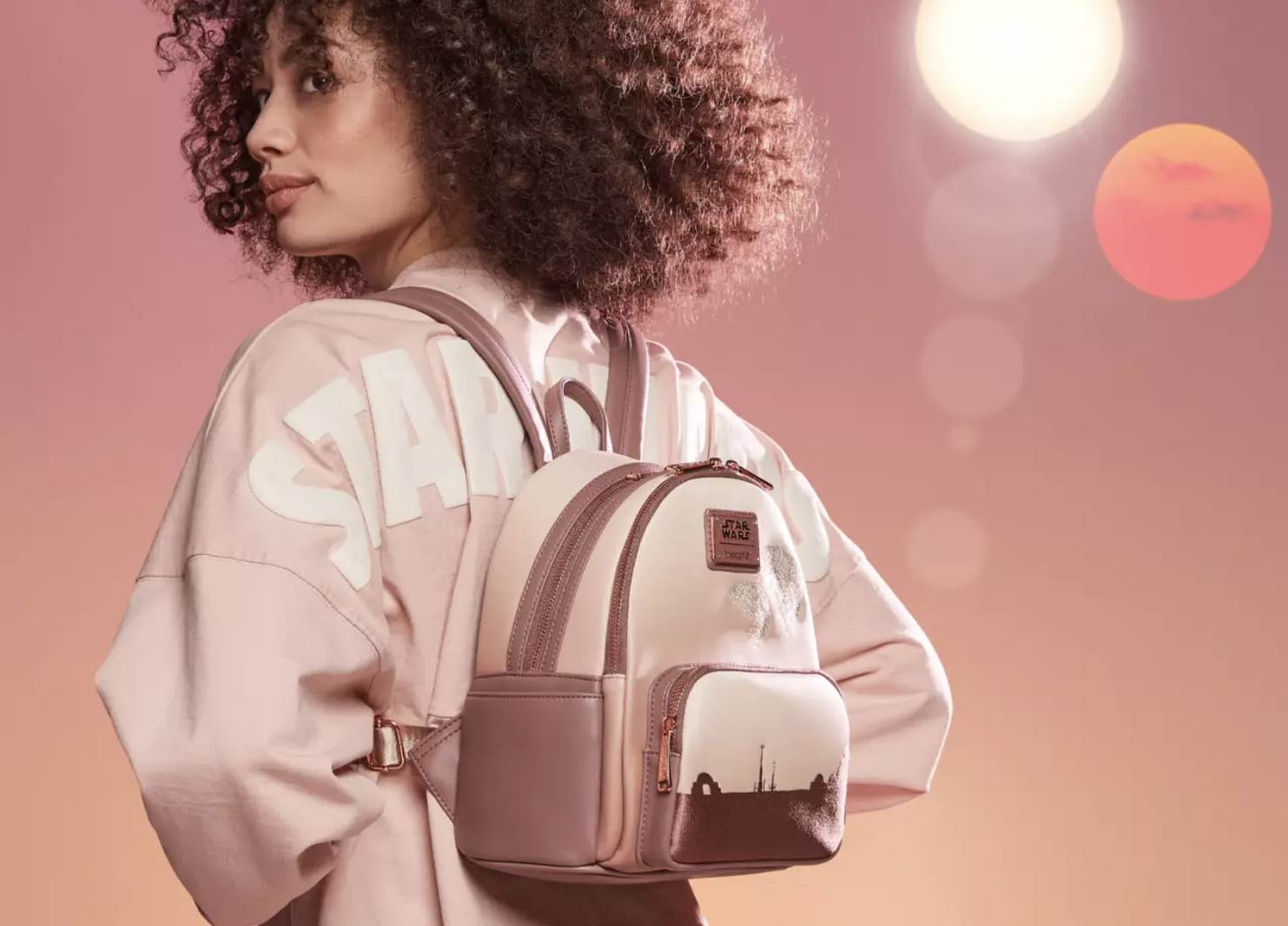 - Just like a sunset on planet, the color scheme features soft pink, dusty rose, and maroon hues presented in an ombre pattern. The headband, and Loungefly are also accented with metallics on the bow, and bag piping. The Starbucks items keep with the ombre pattern, but opt for browns and tans for its contribution.