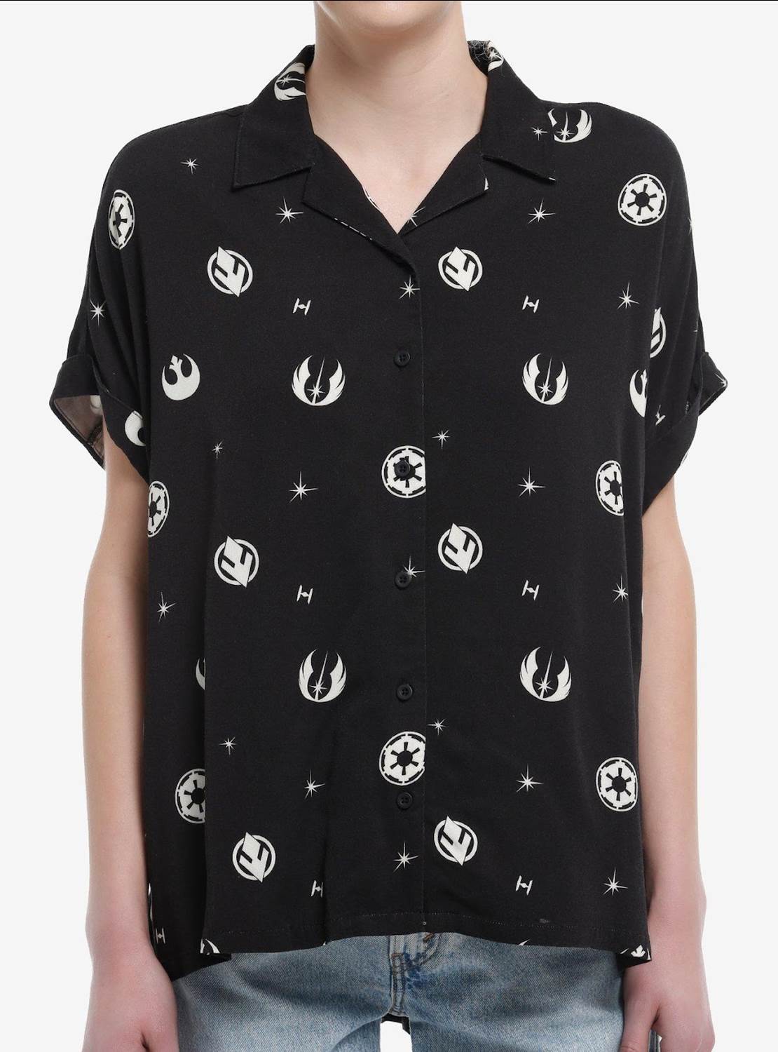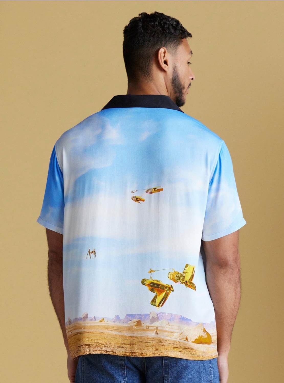- Fans looking for something a little less character specific will appreciate the Our Universe label offering a cast satin bomber jacket, or the podracing woven button up.