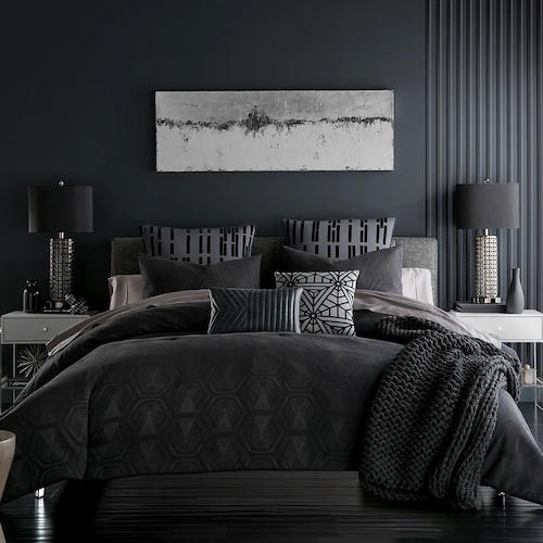 Dark Side Star Wars 7PC Bedding Collection from Sobel Westex Home (currently on sale for $280) - “Darth Vader, powerful Sith Lord and a leader of the Galactic Empire inspires us to create intensely colored spaces. The Dark Side collection pits dark against light, sheer against opaque, and matte versus shine – translating into a study of shadowy contrasts. Subtle patterns are inspired by Darth Vader’s armor and the interior architectural details in the imposing Death Star space station."