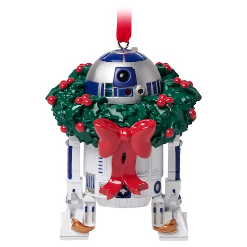 Star Wars R2-D2 Light-Up and Sound Living Magic Holiday Sketchbook Ornament from Disney Store (currently on sale for $16) - “Adorable droid R2-D2 celebrates Life Day in the Star Wars galaxy with a bit of old-fashioned Earthbound décor; a Christmas wreath with holly and berries. Press the button on his dome to hear sound effects from the films and enjoy light-up features."