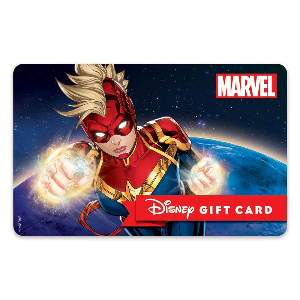 - Not sure what to get for the MCU fan in your life? shopDisney also sells gift cards starring Captain Marvel that can be purchased in select denominations between $25-$500.