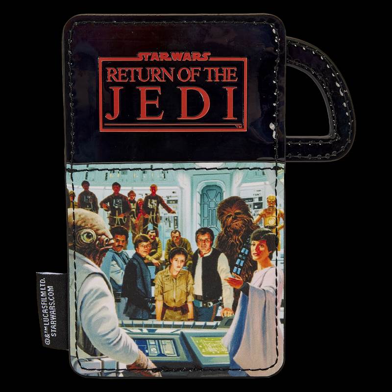 Loungefly Star Wars: Return Of The Jedi Vintage Thermos Card Holder ($20.00) - “Even the galaxy’s heroes require a snack or two. Satisfy your appetite for adventure with the Loungefly Return of the Jedi Vintage Thermos Card Holder! Taking the shape of a retro thermos, this card holder shows scenes from Star Wars: Episode VI – Return of the Jedi. On the front, Luke Skywalker rides a speeder bike as four card slots appear up above. On the back, the film’s logo appears above a scene from the Rebel Alliance. With plenty of room to store your essentials, this card holder makes the perfect ally for any mission. The Loungefly Return of the Jedi Vintage Thermos Card Holder is made of vegan leather (polyurethane) with shiny vegan leather trim. Additional features include applique, debossed, and printed details. Take note of the coordinating inside lining."